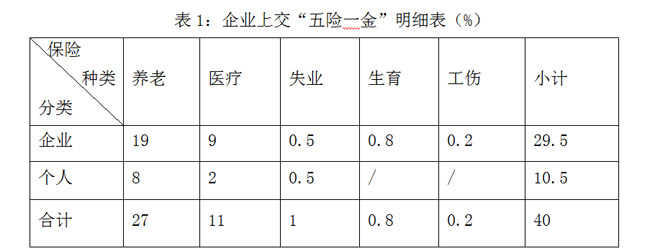 另外,大病保險10月/人•月,住房公積金20~24%(個人與單位各交一半)。也就是不考慮大病保險和住房公積金,“五險”需繳納工資總額的40%。